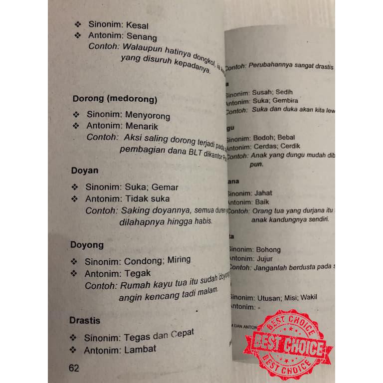 Jual Buku Sinonim Dan Antonim Lengkap Dengan Contoh Kalimat Shopee Indonesia